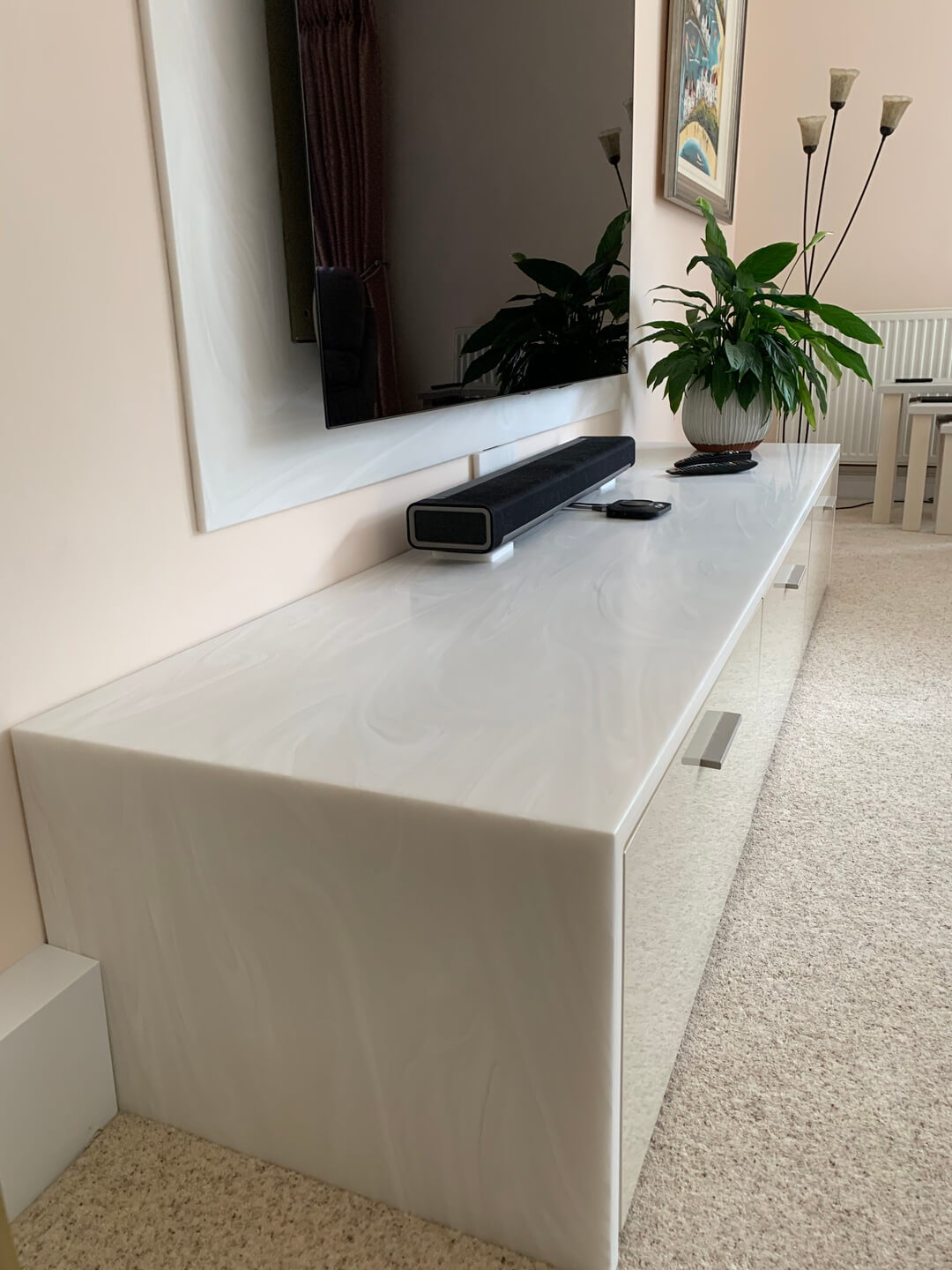 Using solid surface materials to create unique furniture pieces for your home helps your space to evolve in line with your personal tastes, further improving the layout of your home. The materials that we use are more durable than natural alternatives like stone or wood, also allowing greater customisability in terms of texture, colour, shape and design. All of these factors have led to a rise in the popularity of solid surfaces.